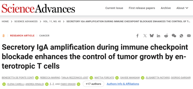 Secretory IgA amplification during immune checkpoint blockade enhances the control of tumor growth by enterotropic T cells